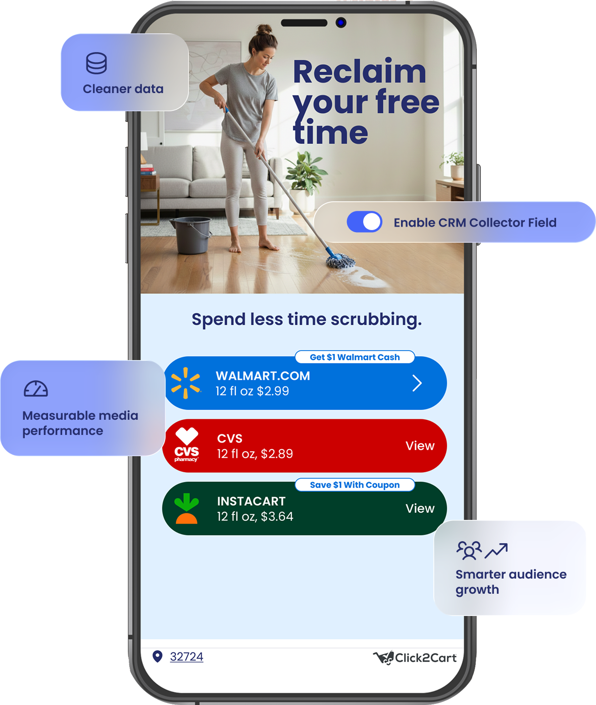 Get your products into carts faster and more frequently from every marketing touchpoint – display ads, social posts, influencer blogs, websites, emails, videos, packaging, and more.
